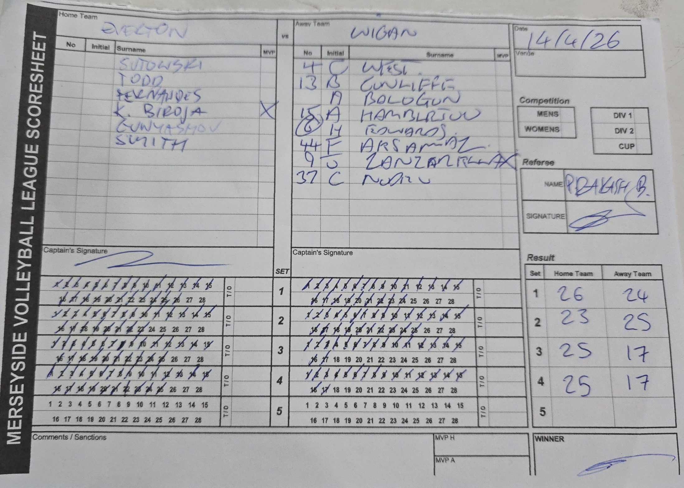 Everton Manatees v Wigan Seahawks (M) Postponed from 29 Mar by Everton 1 Connor Batey 2 Kiran Birdja 3 Volodymyr Ferniuk 4 James Foster 5 Scott Francis 6 Leevi Gumbs 7 Peter Gunyashov 8 Charlie Matthews 9 Anthony McLaughlin 10 Mac Michalowski 11 Evryviadis Mikronis 12 Rafał Pietrykowski 13 George Plagianos 14 Nikolaos Skoutelis 15 Sean Smith 16 Konrad Sutowski 17 Arkadiusz Szybisty 18 Harrison Todd 19 Khaled Sanad 20 Garsio Fernandes 21 Rafael De Oliveira 22 Alin Firtat 23 Milana Kovalevska 24 Lance Angelo Perez 25 Jordan Burrows 26 Prakash Birdja 1 Harry Edwards 2 Benjamin Cunliffe 3 Conor Noden 4 Levi Cornah 5 Ethan Peplow 6 Scott Barrett 7 Aedan Hambleton 8 Sam Lee 9 Alexander Cartwright-Bremner 11 Cameron West 12 Faruk Aksamaz 13 Malcolm Chow 14 Gabriel Davis 15 James Zanzarella 16 Mariusz Chadacz 17 Deji Adeolu-Balogun 18 Rohan Thomas 19 Sophia Waters