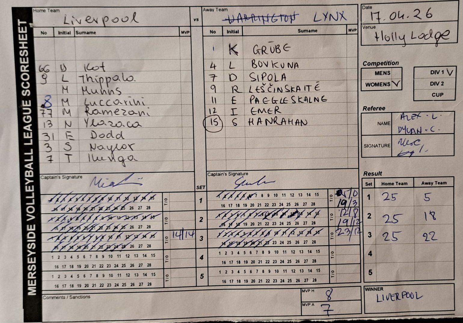 | 17 Apr 2026 | 20:00 | Womens Division 1 | 2025-26 |