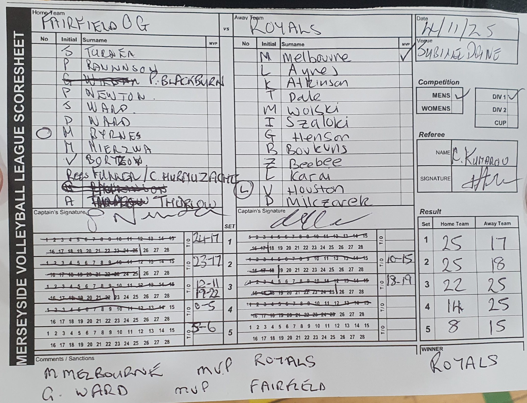 | 04 Nov 2025 | 20:00 | Mens Division 1 | 2025-26 |
