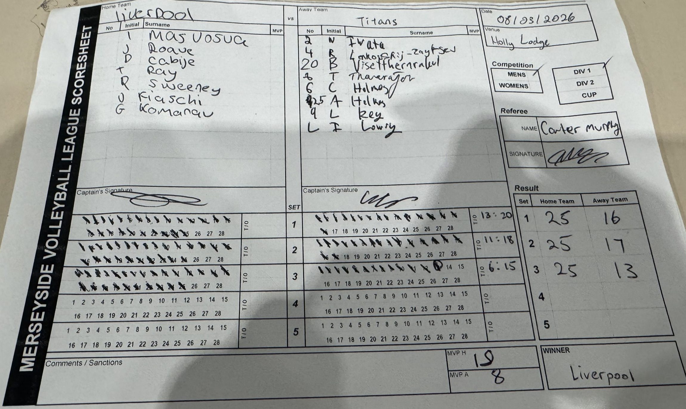 | Liverpool (M) | 3 | 25 | 25 | 25 | Win |