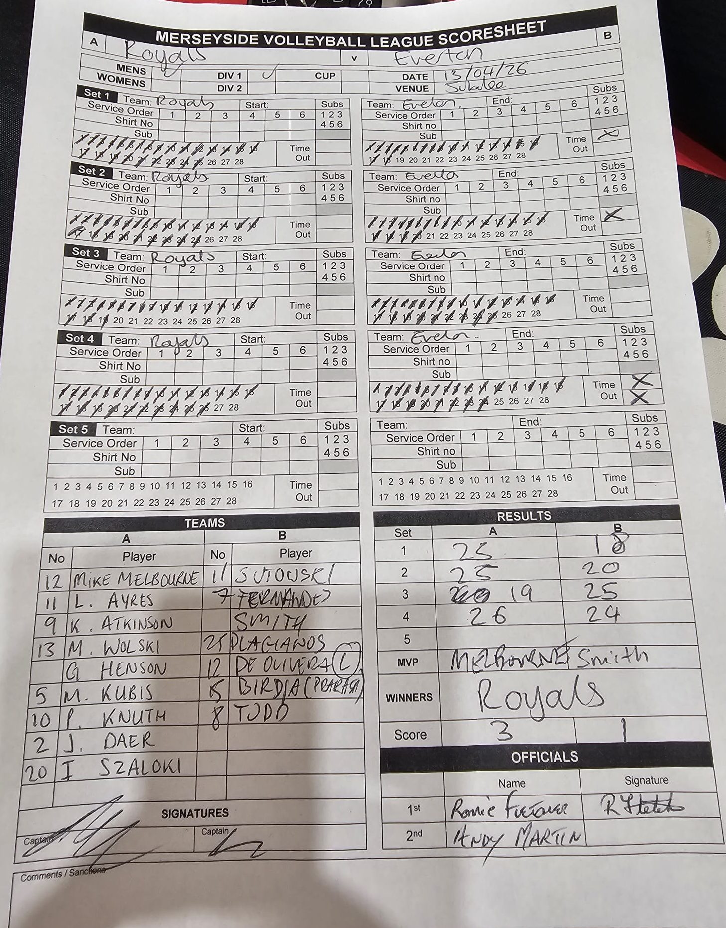 | 13 Apr 2026 | 20:00 | Mens Division 1 | 2025-26 |