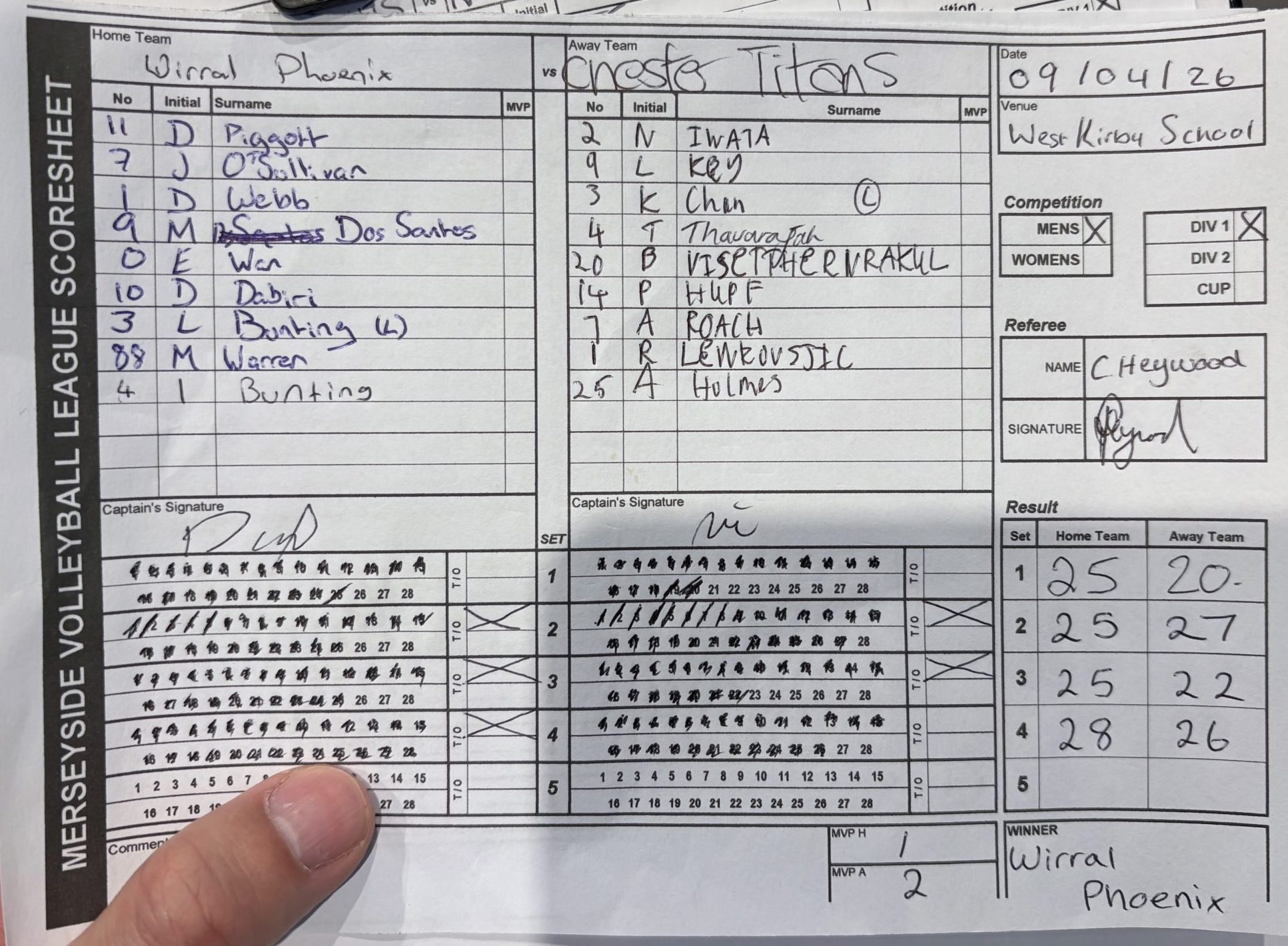 | Wirral Phoenix UTS | 3 | 25 | 25 | 25 | 28 | Win |