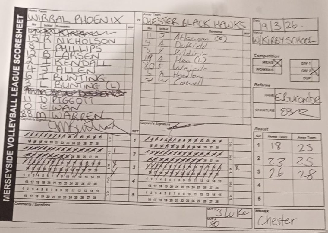 Wirral Phoenix v Knutsford Raiders 1 Kayleigh King 2 Rob Nicholson 3 Leo Phillips 4 Brian Larsen 5 Ian Kendall 6 James Allan 7 Ian Bunting 8 Mike Warren 9 Janine Cornelius 1 Jamey Howard 2 Steve Harrison 2 Renata Ondruchova 3 Kyle Cavanagh 3 Ulla Hill 4 Jeff Brown 5 Kristian Marsh 6 Jo Forbes 6 Keyt Gaudier 7 Matt Atkins 8 Aaron Tang 11 Matteo Booth