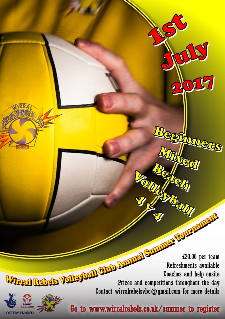 Wirral Rebels Summer Tournament 12 Jun 201712 Jun 2017 Please see poster below for the Wirral Rebels VC Annual Summer Tournament. Format is : 2 Womens – 2 Mens No National League or Div 1 MVL players. Max 1 Div 2 MVL player on court at any time (to help team organisation).
